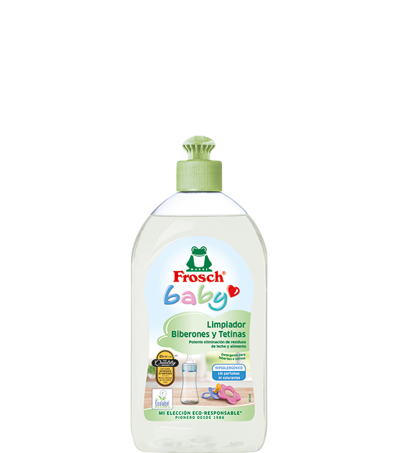 Clean them with the Baby Clean-Rinser from Frosch, a cleaning agent that's non-toxic and easy to use, and your little ones will soon be reunited with their favourite companions. The cleaning product naturally dissolves even the most stubborn milk powder residues. You should also regularly sterilise the bottles in boiling water to make sure that all germs are killed.